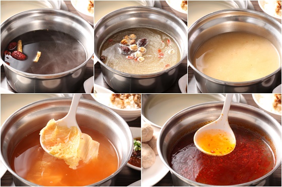 共五種濃郁香醇鍋底任選,滋味甘美風味別緻,藥膳、蒙古、味噌、泡菜、麻辣,全經過細心調味、慢火精燉熬成,鍋鍋均是最精華的美味!無論涮上什麼好料,都別有風味。